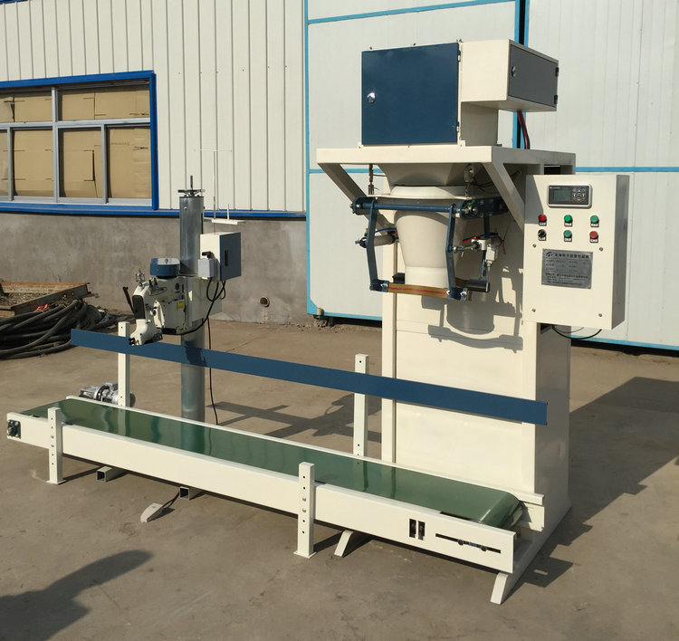 自動計量包裝系統采用人工套袋,三速重力式給料形式,通過智能電控系統控制,自動完成給料、稱量、夾袋、加料等工序,采用杰曼儀表稱重控制器,采用柯力傳感器,使之具有超群的零點穩定性和增益穩定性能。本機具有粗細給料的設定值,單包重量設定值,包裝袋計數,重量累計顯示以及自動去皮,自動調零,自動誤差修正,超差報警和故障自診斷等功能??筛鶕脩舻男枰渲猛ㄓ嵔涌冢c物料接觸部分材質為不銹鋼。